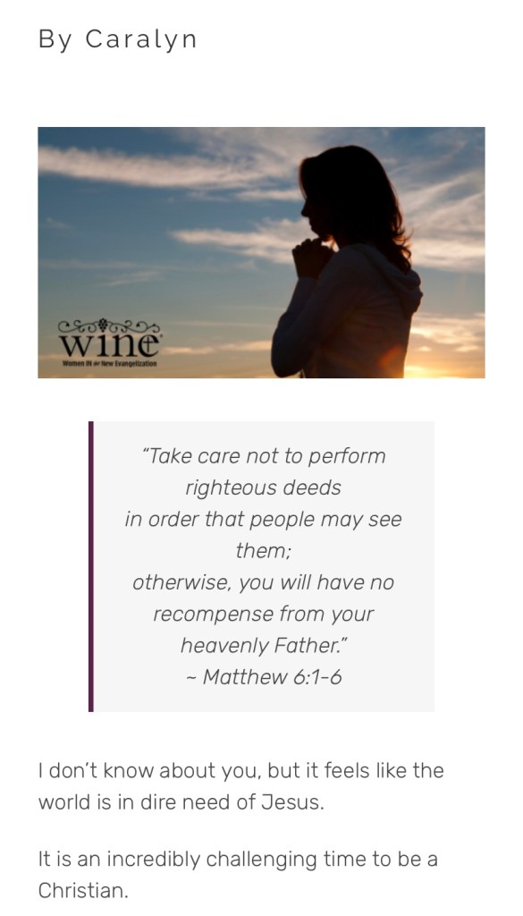 Today, was an exciting day because my article, Bold Faith, was published on WINE Ministry’s website! WINE standing for Women In the New Evangelization.