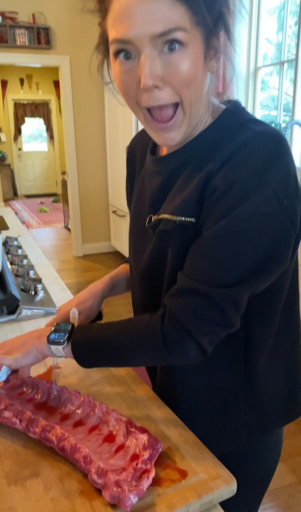 I was cutting apart a 2 pound rack of pork ribs yesterday for the recipe — mom was like, “Is this my daughter!?” haha