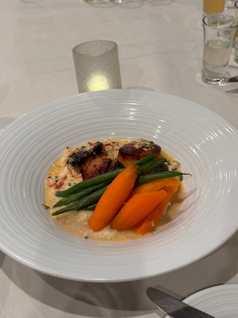 But I’m going to cook exactly what the guests are having, I’m just going to make it Caralyn-friendly. So that means that for the wedding, I’ll be making scallops with a butternut squash puree, with green beans a carrots. (The guests will be having a lobster cream sauce rather than a butternut squash puree, (pictured below) but at least it will look the same, not to mention, it is fitting that butternut squash makes an appearance at my wedding…IYKYK)